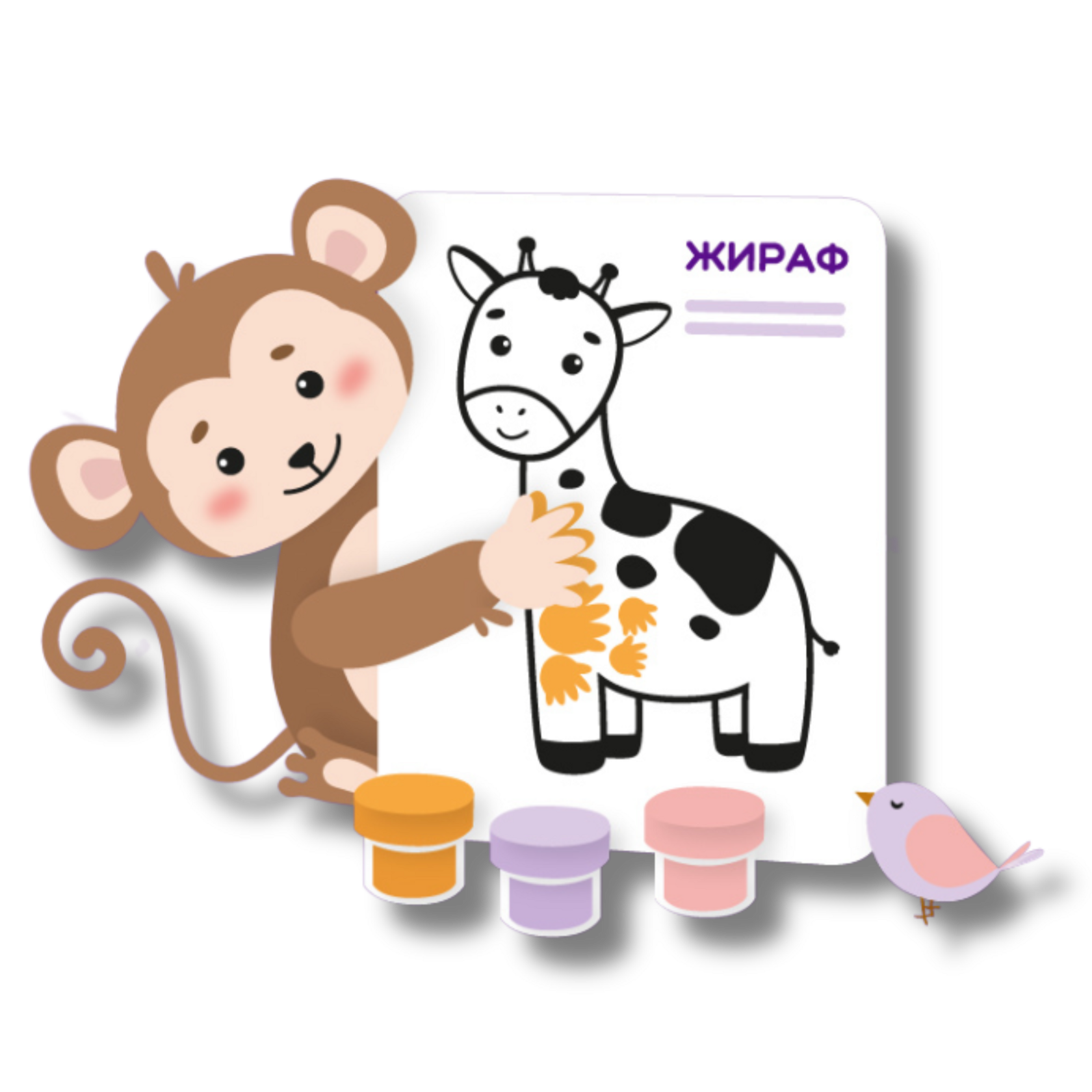 Раскрашиваем пальчиками и угадываем бегемота, жирафа и тигрёнка – любимых героев Monchico.